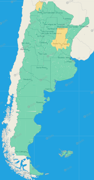 Santa Fe: Belgrano – Castellanos – Las Colonias – San Martín – Garay – La Capital – San Jerónimo – Nueve de Julio – San Cristóbal – San Justo – General Obligado – San Javier – Vera
