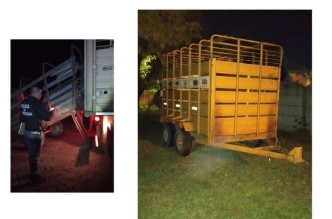 Con los datos aportados, personal de las divisiones Investigaciones y Patrulla Rural Norte de Las Varillas llevó adelante dos allanamientos en Las Varas, que resultaron positivos. Allí se secuestraron 25 terneros raza Braford, además de teléfonos celulares, una camioneta, un tráiler doble eje y otros elementos vinculados a la causa.