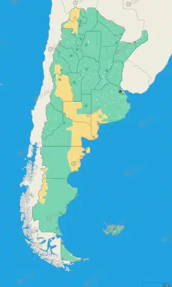 Buenos Aires: Costa de Patagones -Costa de Bahía Blanca – Costa de Coronel Dorrego – Costa de Coronel de Marina Leonardo Rosales – Costa de Villarino – Monte Hermoso – Norte de Bahía Blanca – Oeste de Patagones – Oeste de Villarino – Puan – Zona baja de Coronel Pringles – Zona baja de Coronel Suárez – Zona baja de Saavedra – Zona baja de Tornquist