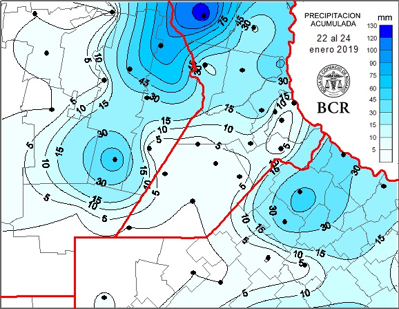 Las últimas lluvias tambien dejaron cuadros de soja que están completamente bajo agua, que difícilmente puedan recuperarse, o saturados y a punto anegarse. La gravedad de estas últimas lluvias está en que insisten en las áreas más problematizadas, centro sur de Santa Fe, E de Córdoba, y NE bonaerense. Estas zonas tienen en común que del 1ro al 24 de enero llevan acumulados más de 150 mm y que las napas están a escasos centímetros de los suelos. Bellville es donde más ha llovido en enero, acumuló 282 mm. Junto con las áreas de Leones y Justiniano Pose están en una situación crítica. El agua no se despeja y si bien es todavía difícil cuantificar la pérdida de los cultivos, va a ser muy significativa.