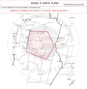 Aviso Meteorológico a Muy Corto Plazo N° 109