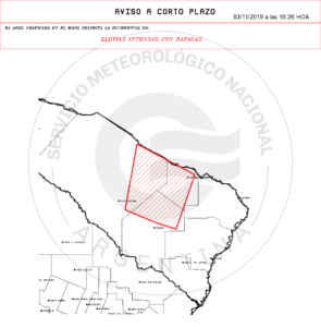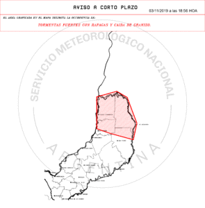 FENÓMENO: TORMENTAS FUERTES CON RAFAGAS Y CAIDA DE GRANIZO.
