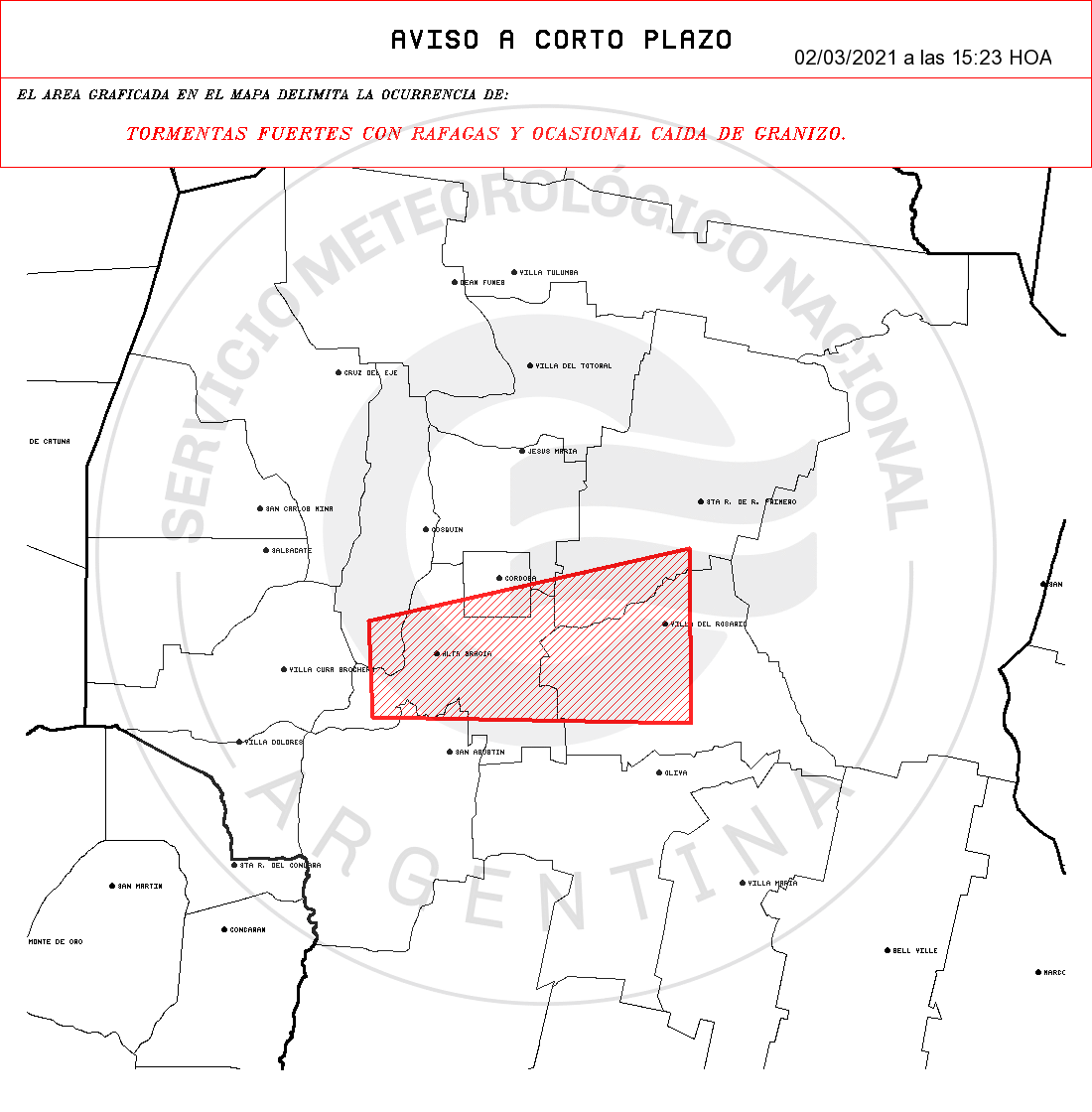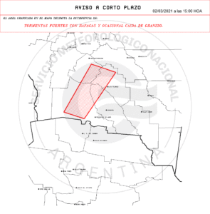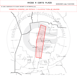 FENÓMENO: TORMENTAS FUERTES CON RAFAGAS Y OCASIONAL CAIDA DE GRANIZO.