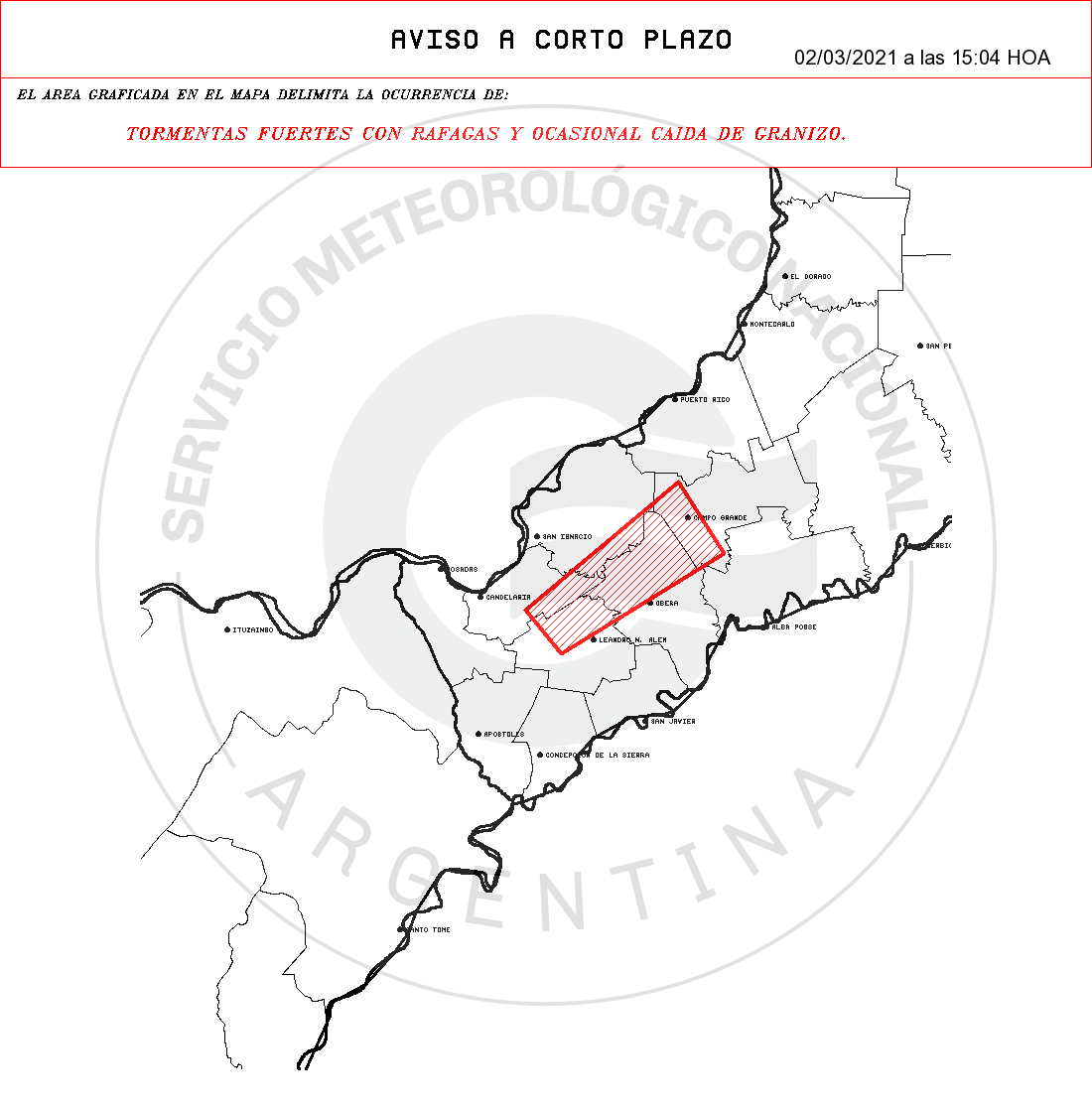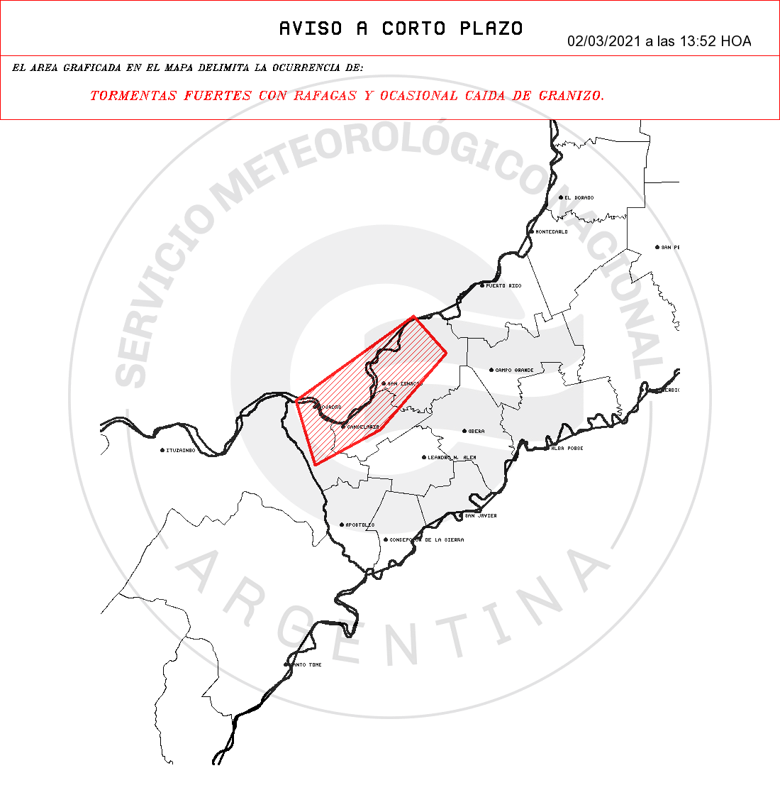 Zonas: CORRIENTES: Gral Alvear – Santo Tome.