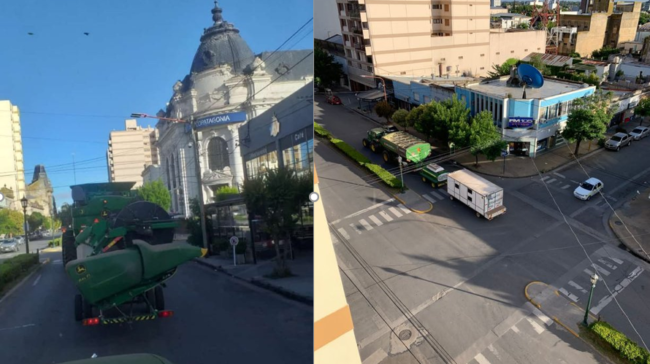Un equipo de cosecha se paseó por el centro de Tres Arroyos, cabecera del partido homónimo del sur de la provincia de Buenos Aires.