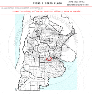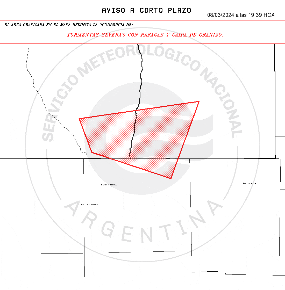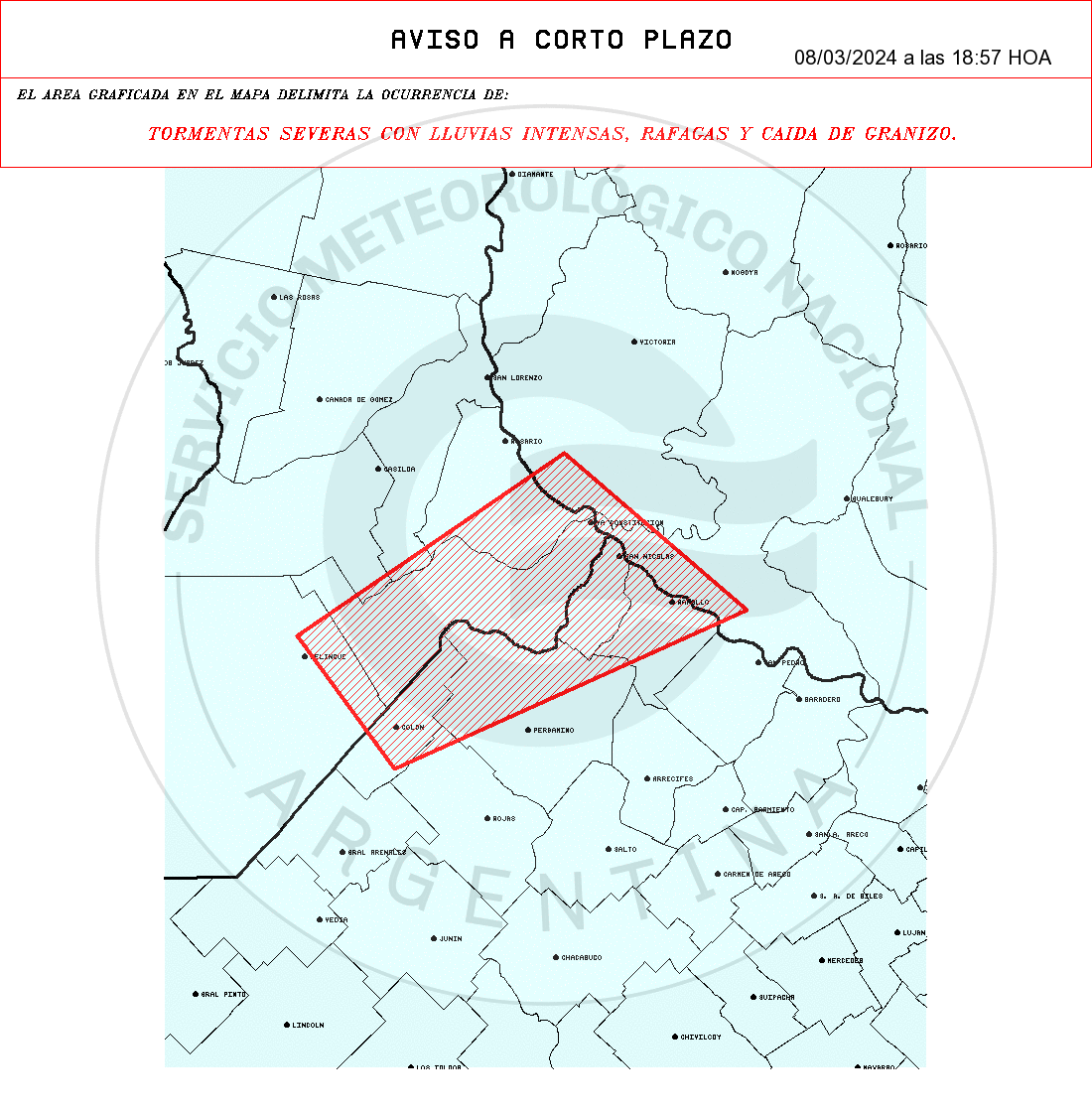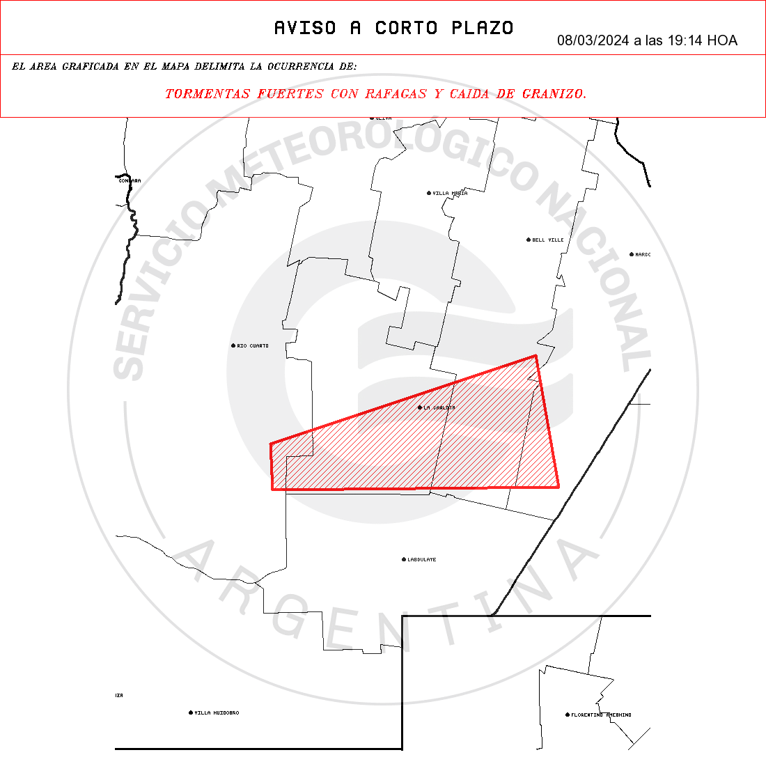 - Medidas de protección: 1- Asegurá los objetos que puedan ser arrojados por el viento. 2- Mantenete alejado de los árboles, ya que la fuerza del viento podria quebrar alguna de sus ramas. 3- Permanecé en construcciones cerradas como casas, escuelas o edificios públicos. 4- Mantenete alejado de artefactos eléctricos y evitá el uso de teléfonos con cable. 5- Evitá actividades al aire libre. 6- Para minimizar el riesgo de ser alcanzado por un rayo, no permanezcas en playas, ríos, lagunas o piletas.Los fenómenos indicados en el ACP fueron detectados con radares meteorológicos.