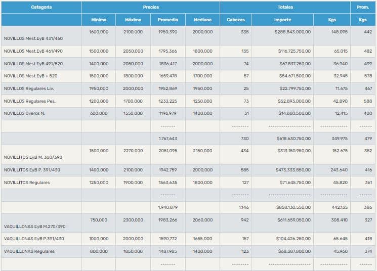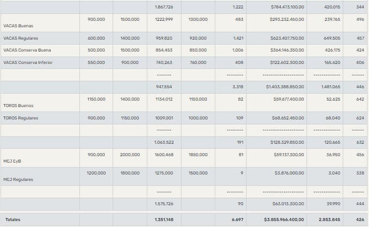 Ganadería Cierre del mercado de hacienda el 31 de mayo 31 de mayo de 2024 FacebookTwitterWhatsAppTelegramEmailImpresión PRECIOS POR CATEGORÍA DESDE EL VIERNES 31/05/2024 MERCADO AGROGANADERO Te puede interesar Pronóstico de lluvias hasta el 10 de junio El Presidente Javier Milei promete bajar las retenciones al campo ¿A qué tipo de cambio se haría la competencia de monedas? Aumentan la prestación por desempleo para el trabajador rural Innovación y éxito en la agricultura de la Patagonia: récords en cultivos de soja, trigo y maíz Fuente: Mercado Agroganadero MÁS INFO PARA TU CAMPO ENTRA AQUÍ
