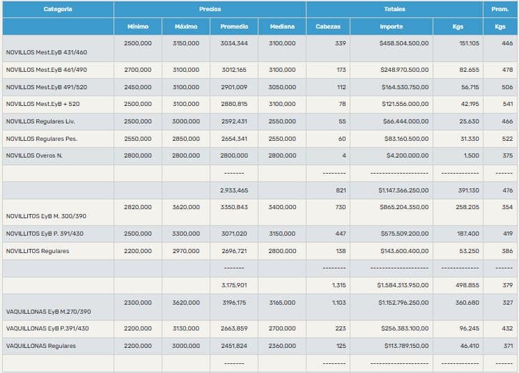 PRECIOS POR CATEGORÍA DESDE EL MARTES 27/05/2025