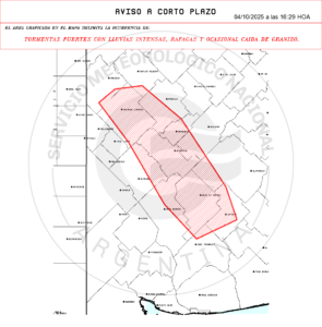 TORMENTAS FUERTES CON LLUVIAS INTENSAS Y OCASIONAL CAIDA DE GRANIZO.