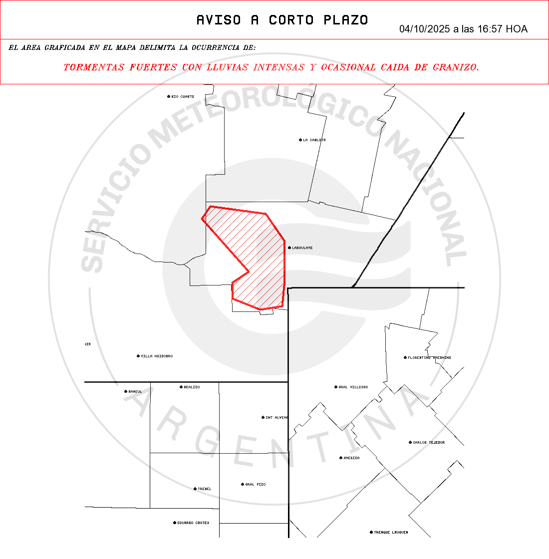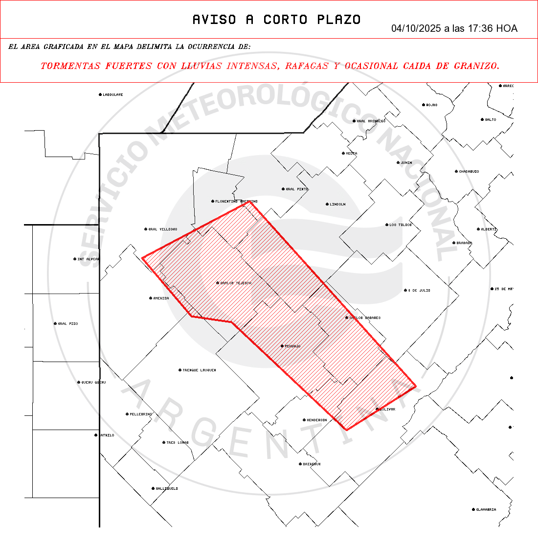 - Zonas: BUENOS AIRES: Adolfo Alsina – Bolívar – Carlos Tejedor – Cnel Suarez – Crel Pringles – Daireaux – Gral Lamadrid – Guamaní – Hipólito Yrigoyen – Laprida – Olavarría – Pehuajó – Trenque Lauquen.