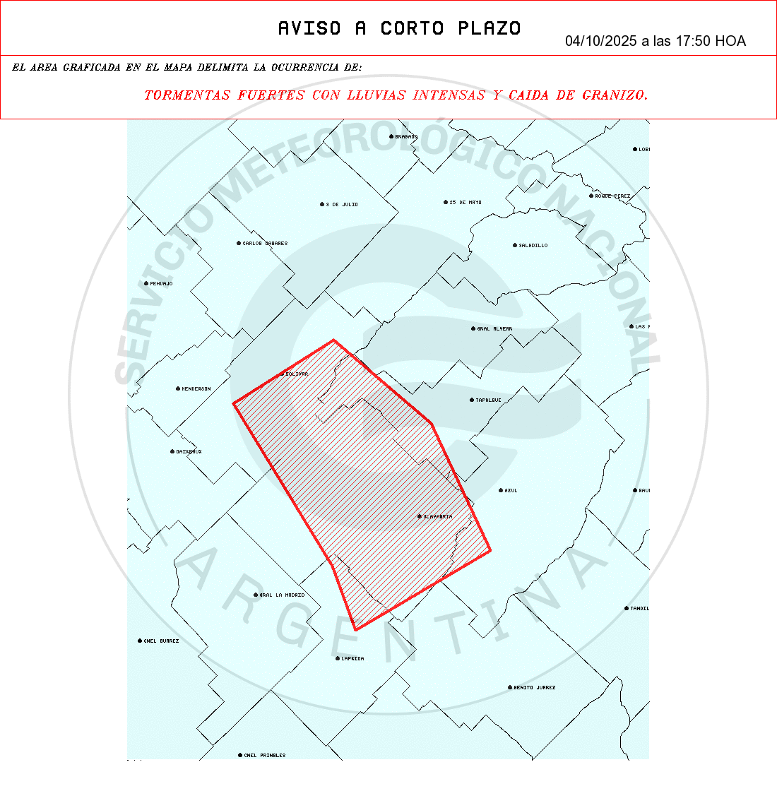- Zonas: BUENOS AIRES: Azul – Bolívar – Laprida – Olavarría – Tapalqué.