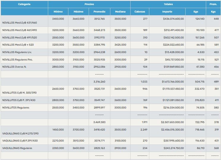 PRECIOS POR CATEGORÍA DESDE EL MARTES 14/10/2025