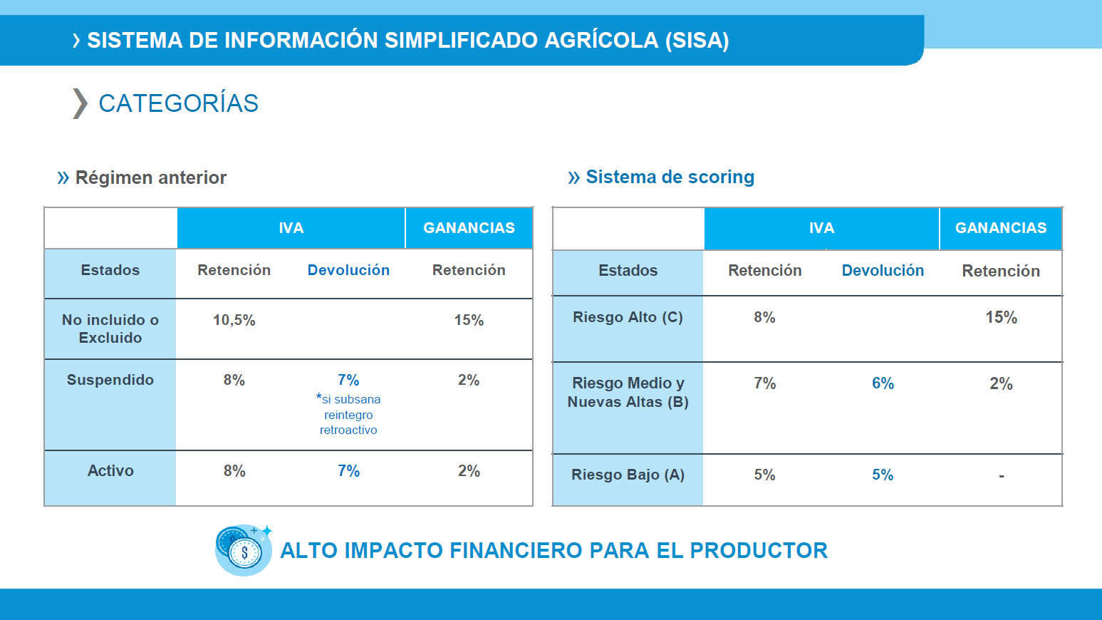 El SISA unifica 4 registros en un único sistema que elimina trámites y trabas burocráticas y reduce en más del 50% la información requerida. El mismo integra el Registro Fiscal de Operaciones de Granos (RFOG); el Registro Fiscal de Tierras Rurales Explotadas (TIRE); el Registro Nacional Sanitario de Productores Agropecuarios (RENSPA) y el Padrón de Productores de Granos Monotributistas.
