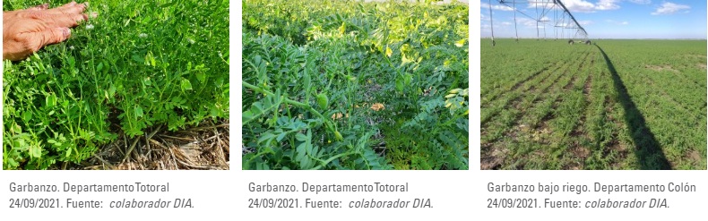 El 60 % del cultivo, en los lotes ubicados hacia el centro este de la provincia, se encontraba atravesando el inicio de llenado de grano, mientras que el 40 % restante, más hacia el norte, comenzaba a tener las primeras vainas visibles.
