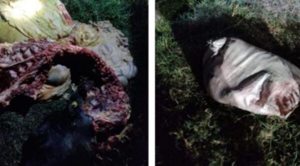 Los efectivos policiales realizaron un rastrillaje en los campos de la zona buscando a los propietarios de la moto y en el establecimiento agropecuario del productor Jorge Luis encontraron en un corral un animal vacuno faenado.