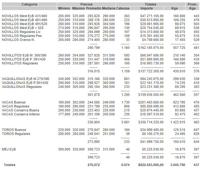 PRECIOS DEFINITIVOS POR CATEGORIA EL 17 DE AGOSTO