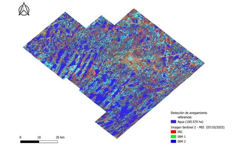 Portillo advirtió que el registro podría ser todavía mayor, ya que zonas anegadas con vegetación o suelos saturados no siempre son detectadas por los sensores.