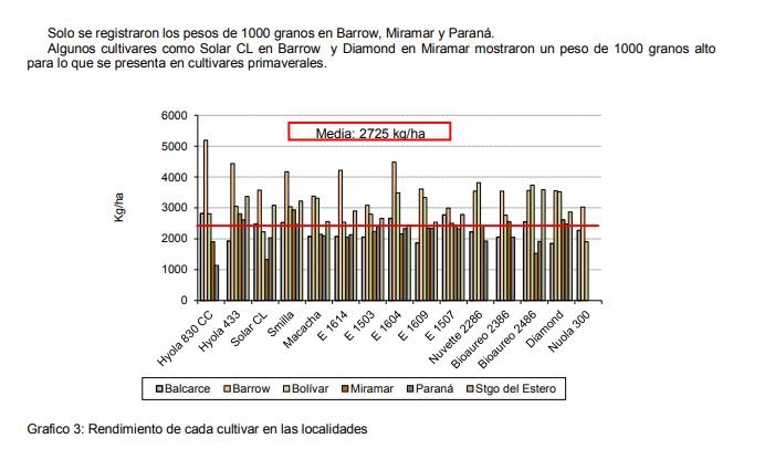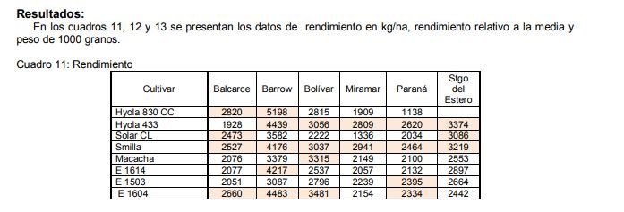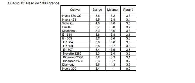En esta campaña por diversos motivos solo se pudo llegar a obtener resultados en las localidades de Barrow, Miramar, Balcarce, Paraná, Bolívar y Santiago del Estero para los cultivares primaverales y Barrow, Bolívar, Miramar y Balcarce para las invernales.