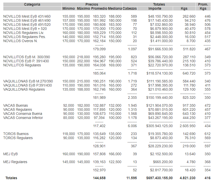 Mercados¿A cuanto cerró el mercado de hacienda el 11 de mayo? 11 de mayo de 2021FacebookTwitterWhatsAppTelegramEmailImpresión MERCADO DE HACIENDA DE LINIERSPRECIOS POR CATEGORIA PARA EL MARTES 11/05/2021 MÁS INFO para tu campo entrá AQUÍ