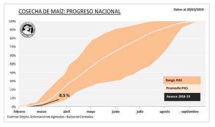 A la fecha, el avance de cosecha se ubica en el 8,5% de la superficie apta. El rendimiento medio nacional supera los 93 qq/Ha y la proyección de producción se mantiene en 45 MTn.