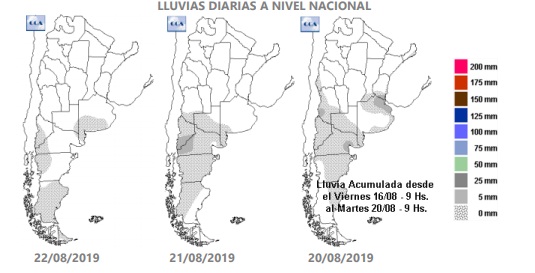 Un agosto casi sin lluvias empieza a incidir en la condición de los trigos. En una semana bajó un 15% los lotes que estaban muy buenos a excelentes, pasando a ser ahora el 65%. El 35% está en buenas condiciones. La falta de agua ha marchitado hojas basales, esta semana se nota la menor turgencia en hojas y el menor vigor en el cultivo en el sur de Santa Fe. Sin lluvias, sigue disminuyendo la humedad edáfica en toda la región, sobre todo al sur de Córdoba. Allí ya aparecen sectores con principio de sequía. El nivel de humedad de suelo escasa ya abarca prácticamente toda la región, salvo el noreste de Buenos Aires. Los ciclos largos sembrados bien temprano, un 10% de los lotes, están empezando a encañar. Advierten que pueden ser necesarios hasta 3 controles de enfermedades en este ciclo del trigo “Ya arrancaron los tratamientos contra roya anaranjada en trigos en etapas tempranas, y esto hace pensar en que se van a necesitar 3 tratamientos”, advierten en el área los técnicos. Las pústulas de roya se observan en casi todos los cuadros de trigo la región. Tanto roya amarilla como anaranjada están presentes, pero la roya anaranjada es la que más se observa en los cultivares de la región. Sólo en zonas donde la severidad es baja se postergan las aplicaciones. Lo bueno, es que las condiciones ambientales están limitando la actividad fúngica.