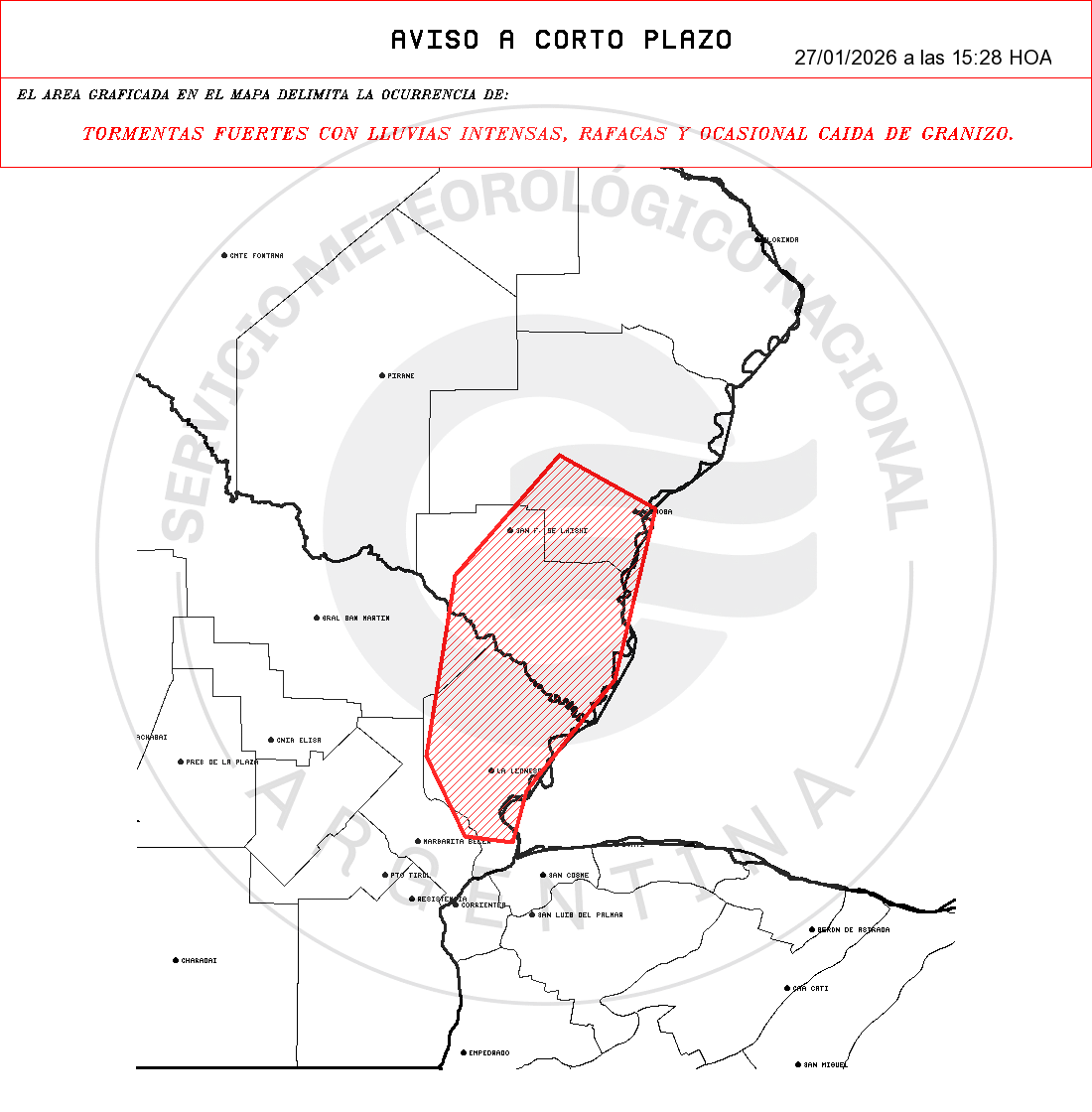 TORMENTAS FUERTES CON LLUVIAS INTENSAS Y OCASIONAL CAIDA DE GRANIZO.