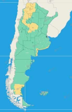 Tucumán: Burruyacú – Capital – Cruz Alta – Famaillá – Graneros – La Cocha – Leales – Simoca – Trancas – Yerba Buena – Zonas bajas de Chicligasta – Zonas bajas de Juan Bautista Alberdi – Zonas bajas de Lules – Zonas bajas de Monteros – Zonas bajas de Río Chico – Zonas bajas de Tafí Viejo – Zona montañosa de Andalgalá – Zona montañosa de Santa María – Zona montañosa de Chicligasta – Zona montañosa de Juan Bautista Alberdi – Zona montañosa de Lules – Zona montañosa de Monteros – Zona montañosa de Río Chico – Zona montañosa de Tafí Viejo – Zona montañosa de Tafí del Valle – Valles de Santa María – Valles de Tafí del Valle