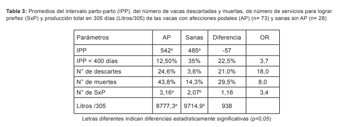 El presente trabajo pone de manifiesto a nivel de los tambos del NOA el perjuicio que ocasionan las AP sobre los índices reproductivos, el descarte temprano y la salud general de las vacas, como también sobre su rinde lácteo, y señala la necesidad de la adopción de medidas preventivas.
