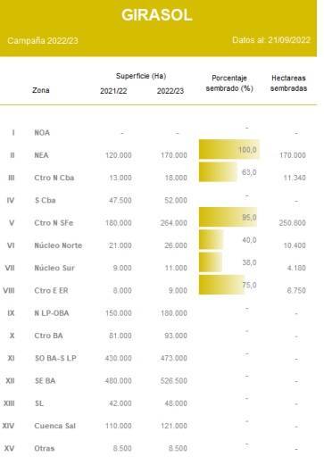 El progreso intersemanal fue de 1,8 puntos porcentuales, cubriendo el 22,7 % de las 2 MHa proyectadas para el ciclo en curso, lo que en números absolutos representa algo más de 450.000 hectáreas. En cuanto a los cuadros ya sembrados, pese a una leve mejoría, continúan observándose demoras en el desarrollo, crecimiento lento y emergencias heterogéneas, debido a déficit hídrico y bajas temperaturas.