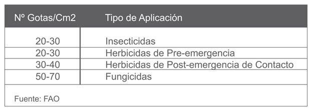 A continuación, se detallan la cantidad de imp/cm2 que recomienda la FAO para cada tipo de aplicación.