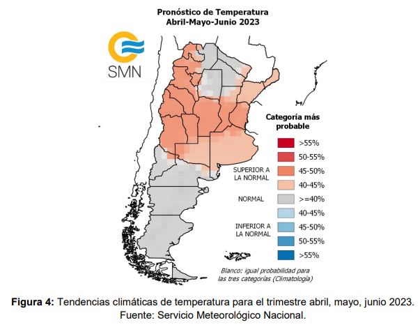 En tanto a las temperaturas continuaran siendo mayores a lo normal para todo el centro y sur de la provincia de Santa Fe, esta tendencia se mantiene desde el inicio del ciclo del cultivo hasta el presente, impactando junto al déficit hídrico en su crecimiento y desarrollo y por lo tanto en el rendimiento final de este cultivo.