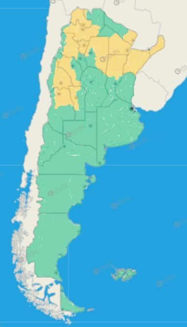 Tucumán: Burruyacú – Capital – Cruz Alta – Famaillá – Graneros – La Cocha – Leales – Simoca – Trancas – Yerba Buena – Zonas bajas de Chicligasta – Zonas bajas de Juan Bautista Alberdi – Zonas bajas de Lules – Zonas bajas de Monteros – Zonas bajas de Río Chico – Zonas bajas de Tafí Viejo – Zona montañosa de Chicligasta – Zona montañosa de Juan Bautista Alberdi – Zona montañosa de Lules – Zona montañosa de Monteros – Zona montañosa de Río Chico – Zona montañosa de Tafí Viejo – Zona montañosa de Tafí del Valle – Zona montañosa de Andalgalá – Zona montañosa de Santa María – Valles de Santa María – Valles de Tafí del Valle