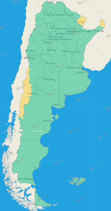 Neuquén: Cordillera de Huiliches – Cordillera de Lácar – Sur de Aluminé – Catán Lil – Collón Curá – Zapala – Zona baja de Aluminé – Zona baja de Huiliches – Zona baja de Lácar – Este de Loncopué – Este de Picunches – Este de Ñorquín – Oeste de Añelo – Oeste de Pehuenches – Sur de Chos Malal – Sur de Minas – Cordillera de Aluminé – Cordillera de Chos Malal – Cordillera de Loncopué – Cordillera de Minas – Cordillera de Picunches – Cordillera de Ñorquín