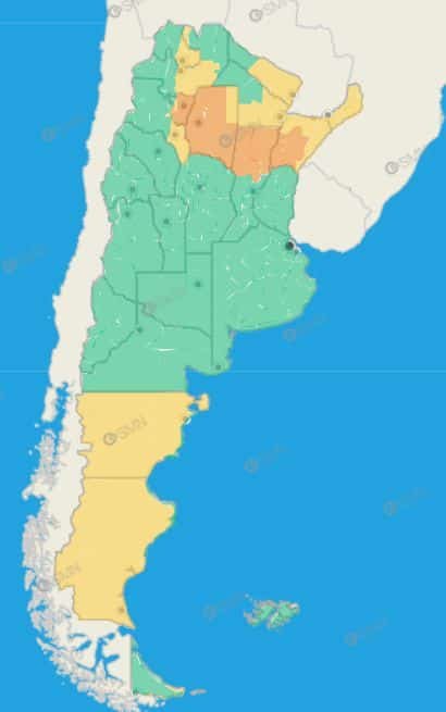 Tucumán: Burruyacú – Capital – Cruz Alta – Famaillá – Graneros – La Cocha – Leales – Simoca – Trancas – Yerba Buena – Zonas bajas de Chicligasta – Zonas bajas de Juan Bautista Alberdi – Zonas bajas de Lules – Zonas bajas de Monteros – Zonas bajas de Río Chico – Zonas bajas de Tafí Viejo