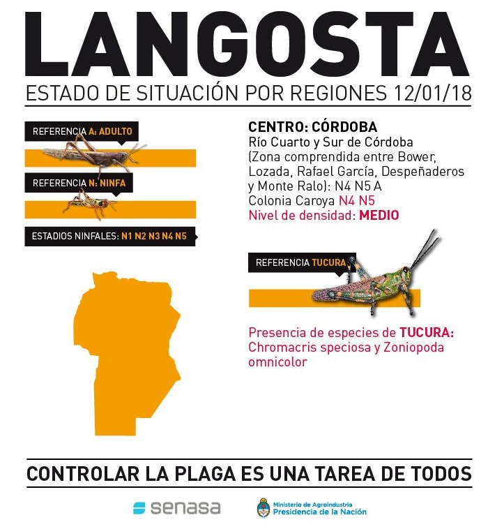 n varios estadios de evolución, el Servicio Nacional de Sanidad y Calidad Agroalimentaria informó que relevó en la provincia la presencia de langosta.