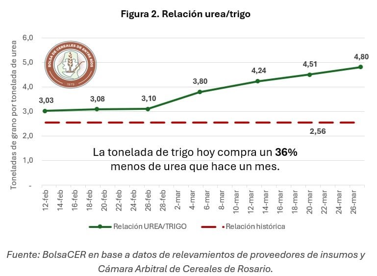 - Hace un mes: 1 tn de trigo = 330 kg de urea