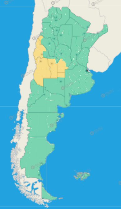Mendoza: Este de Las Heras – La Paz – Lavalle – San Martín – Santa Rosa Cordillera de Malargüe – Cordillera de San Rafael – Cordillera de San Carlos – Cordillera de Tunuyán