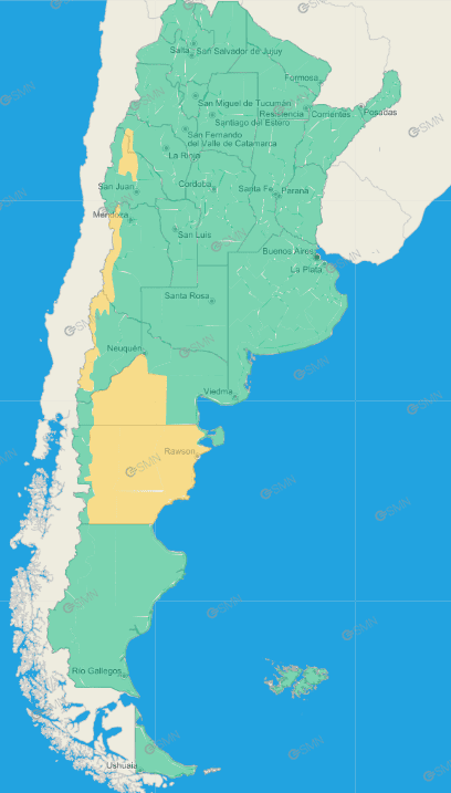 Chubut: Costa de Florentino Ameghino – Costa de Rawson – Este de Mártires – Este de Telsen – Gaiman – Meseta de Biedma – Meseta de Florentino Ameghino – Meseta de Rawson – Gastre – Oeste de Mártires – Oeste de Telsen – Paso de Indios – Meseta de Escalante – Sarmiento – Sudoeste de Florentino Ameghino – Meseta de Río Senguer – Meseta de Cushamen – Meseta de Futaleufú – Meseta de Languiñeo – Meseta de Tehuelches