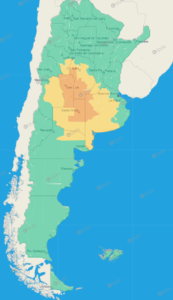 Buenos Aires: Costa de Patagones – Norte de Bahía Blanca – Oeste de Patagones – Oeste de Villarino – Puan – Zona baja de Coronel Pringles – Zona baja de Coronel Suárez – Zona baja de Saavedra – Zona baja de Tornquist – Costa de Bahía Blanca – Costa de Coronel Dorrego – Costa de Coronel de Marina Leonardo Rosales – Costa de Villarino – Monte Hermoso – Adolfo Alsina – Daireaux – Guaminí – Pellegrini – Salliqueló – Trenque Lauquen – Tres Lomas – Florentino Ameghino – General Villegas – Rivadavia – Zona serrana de Coronel Pringles – Zona serrana de Coronel Suárez – Zona serrana de Saavedra – Zona serrana de Tornquist – Adolfo Gonzales Chaves – Centro de Lobería – Norte de Coronel Dorrego – Norte de Necochea – Norte de San Cayetano – Norte de Tres Arroyos – Costa de Lobería – Costa de Necochea – Costa de San Cayetano – Costa de Tres Arroyos – Azul – Rauch – Tapalqué – Zona baja de Benito Juárez – Zona baja de Tandil – General La Madrid – Laprida – Olavarría – General Alvear – General Belgrano – General Paz – Las Flores – Lobos – Monte – Navarro – Roque Pérez – Saladillo – Alberti – Bragado – Chivilcoy – General Viamonte – Nueve de Julio – Veinticinco de Mayo – Arrecifes – Capitán Sarmiento – Carmen de Areco – Chacabuco – Colón – General Arenales – General Pinto – Junín – Leandro N. Alem – Lincoln – Pergamino – Rojas – Salto – Bolívar – Carlos Casares – Carlos Tejedor – Hipólito Yrigoyen – Pehuajó