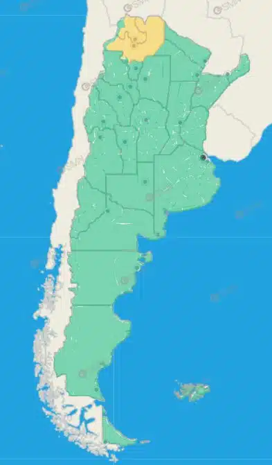 Jujuy: El Carmen – Ledesma – Palpalá – San Antonio – San Pedro – Santa Bárbara – Valle Grande – Zona baja de Doctor Manuel Belgrano – Zona baja de Tilcara – Zona montañosa de Doctor Manuel Belgrano – Zona montañosa de Humahuaca – Zona montañosa de Tilcara – Zona montañosa de Tumbaya – Puna de Cochinoca – Puna de Humahuaca – Puna de Rinconada – Puna de Santa Catalina – Puna de Tilcara – Puna de Tumbaya – Yavi – Puna de Susques