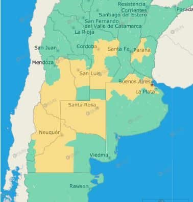 La Pampa: Atreucó – Capital – Catriló – Conhelo – Guatraché – Quemú Quemú – Toay – Utracán -Caleu Caleu – Hucal – Chalielo – Limay Mahuida – Loventué – Chical CO – Puelén – Curacó – Lihuel Calel
