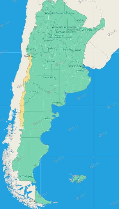 Mendoza: Cordillera de Malargüe – Cordillera de San Rafael – Cordillera de San Carlos – Cordillera de Tunuyán – Cordillera de Las Heras – Cordillera de Luján de Cuyo – Cordillera de Tupungato
