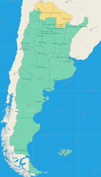 Salta: Capital – Cerrillos – Guachipas – La Viña – Zona baja de Chicoana – Zona baja de La Caldera – Zona baja de Rosario de Lerma – Zona montañosa de Cafayate – Anta – General Güemes – La Candelaria – Metán – Rosario de la Frontera – Rivadavia – General José de San Martín – Yunga de Iruya – Yunga de Orán – Yunga de Santa Victoria