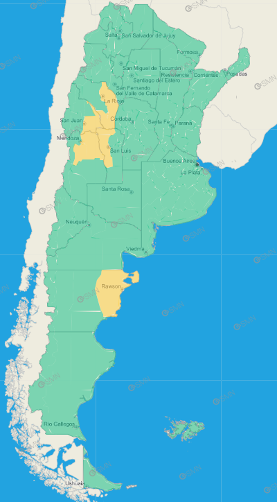 San Juan: 9 de Julio – Albardón – Capital – Chimbas – Rawson – Santa Lucía – Zona baja de Pocito – Zona baja de Rivadavia – Zona baja de Sarmiento – 25 de Mayo – Angaco – Caucete – San Martín – Valle Fértil