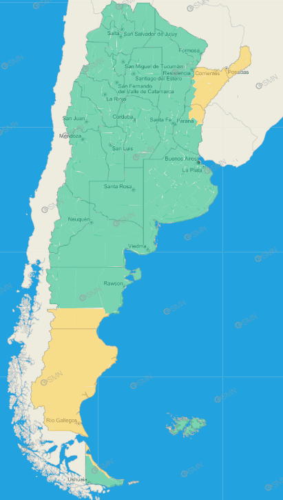 Corrientes: Monte Caseros – Concepción – Curuzú Cuatiá – Mercedes – San Roque – Sauce – General Alvear – Paso de los Libres – San Martín – Santo Tomé – Ituzaingó – San Miguel