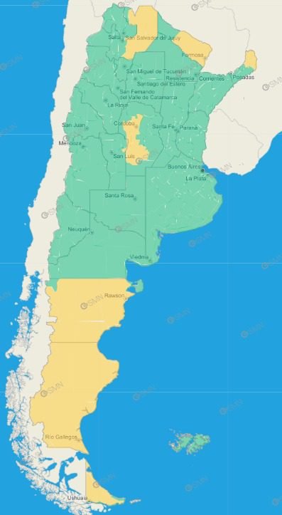 Misiones: Norte de Guaraní – San Pedro – Zona alta de General Manuel Belgrano – Zona alta de Montecarlo – Eldorado – Iguazú – Zona baja de General Manuel Belgrano – Zona baja de Montecarlo