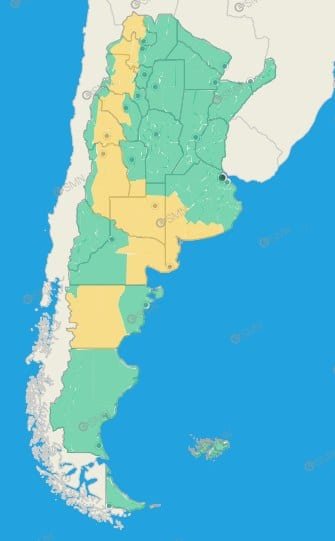 Buenos Aires: Costa de Patagones -Costa de Bahía Blanca – Costa de Coronel Dorrego – Costa de Coronel de Marina Leonardo Rosales – Costa de Villarino – Monte Hermoso – Norte de Bahía Blanca – Oeste de Patagones – Oeste de Villarino – Puan – Zona baja de Coronel Pringles – Zona baja de Coronel Suárez – Zona baja de Saavedra – Zona baja de Tornquist – Adolfo Alsina – Daireaux – Guaminí – Pellegrini – Salliqueló – Trenque Lauquen – Tres Lomas – Adolfo Gonzales Chaves – Centro de Lobería – Norte de Coronel Dorrego – Norte de Necochea – Norte de San Cayetano – Norte de Tres Arroyos – Costa de Lobería – Costa de Necochea – Costa de San Cayetano – Costa de Tres Arroyos