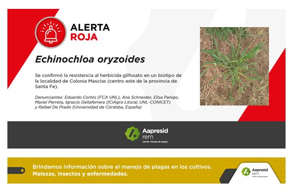 En nuestro país ya estaba declarada la resistencia en E. colona y E. crus-galli, ahora se confirma también en E. oryzoides y se establece una sospecha en E. chacoensis, ambos casos en poblaciones del centro-este de Santa Fe.