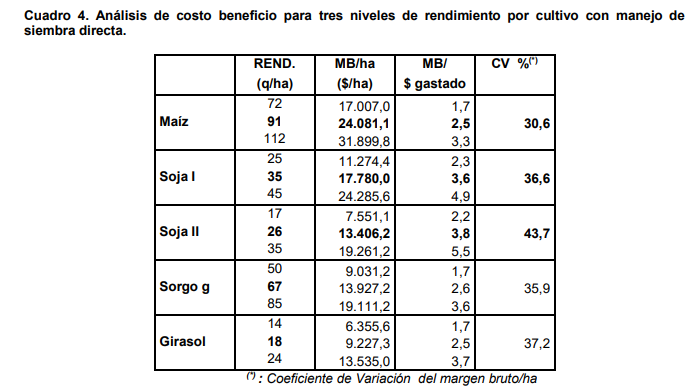 En el cuadro 1 se muestran los paquetes tecnológicos modales en siembra directa empleados por productores que utilizan maquinaria propia.