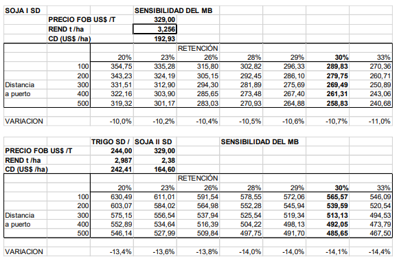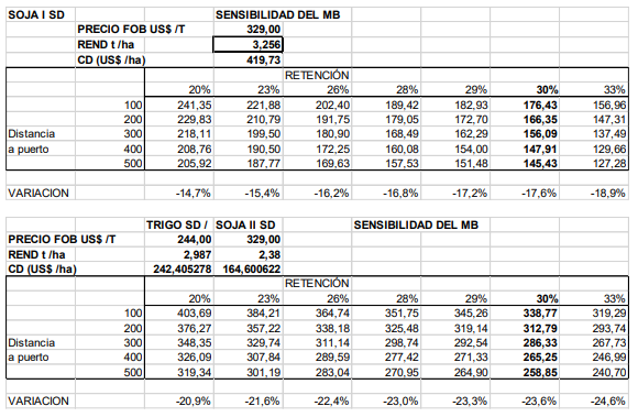 Como comentario general se menciona la mayor eficiencia del doble cultivo que permite tener un resultado más eficiente respecto a los cultivos tradicionales de verano y también logra ser una opción más resiliente ya que presenta menores bajas de margen ante aumentos del costo de fletes e incrementos de derechos para exportación. También debe agregarse las ventajas agronómicas de esta rotación y la disminución del riesgo global de la empresa al diversificar la producción.